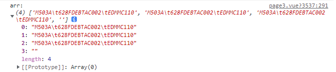 两个 filter 方法是为了过滤掉空字符串,从上面打印的 arr 可以看到,通过 \r\n 做拆分时最后会留有一个空字符串,再通过 \t 做拆分时,每行数据最后实际也会拆分出一个字符串,所以需要 filter 进行一下过滤,打印值如下