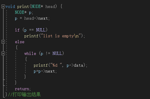 如果链表为空,则只输出一行,list is empty }