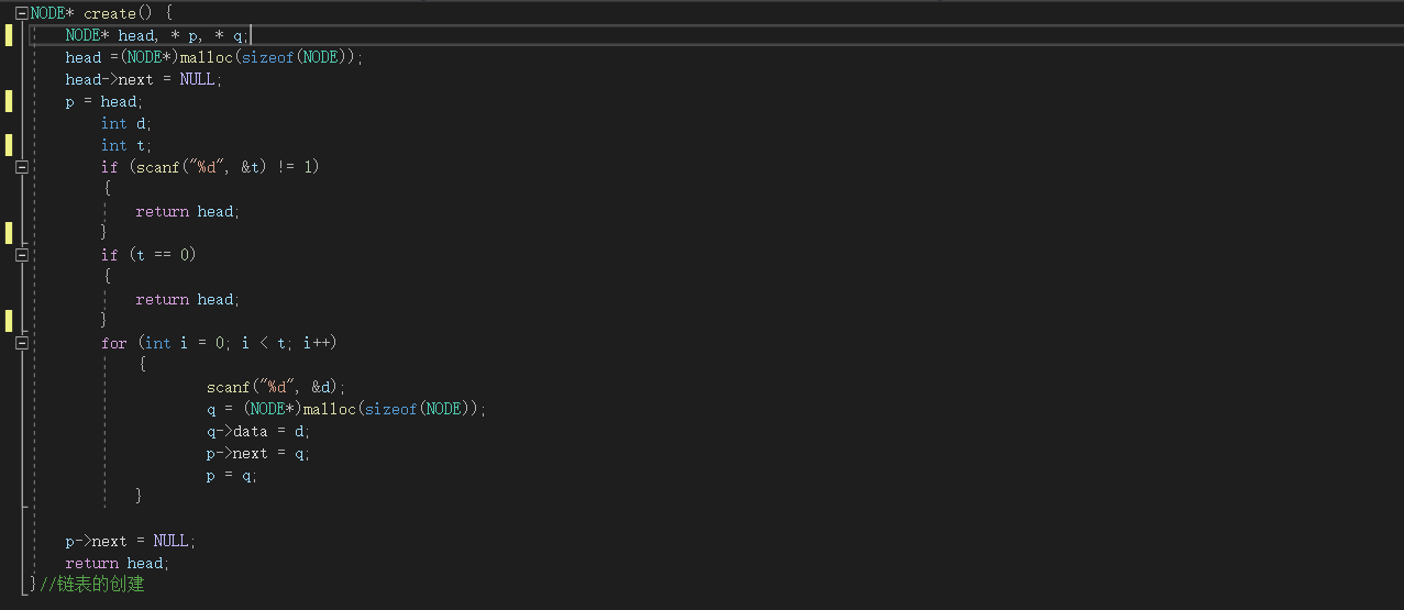 通过这个函数就能够创建好链表了,附上代码: