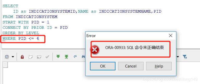 如果查询需要添加where所限定的条件,将where放在“from 表名”后,“start with”前