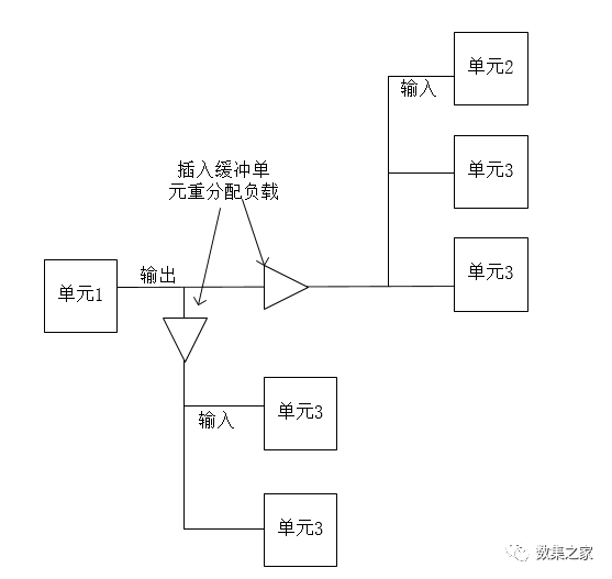 那么可以通过插入缓冲单元重新分配扇出负载来达到优化时序的目的,如下图所示。