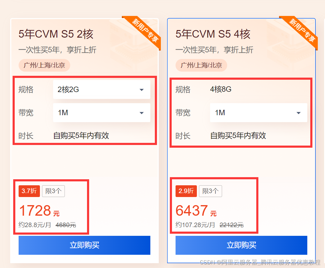 正好腾讯云2023年新春采购季推出了三年时长的轻量应用服务器,以及五年时长的云服务器cvm。这样只选选择时长比较长的就没有那么麻烦的续费或者是迁移的问题。