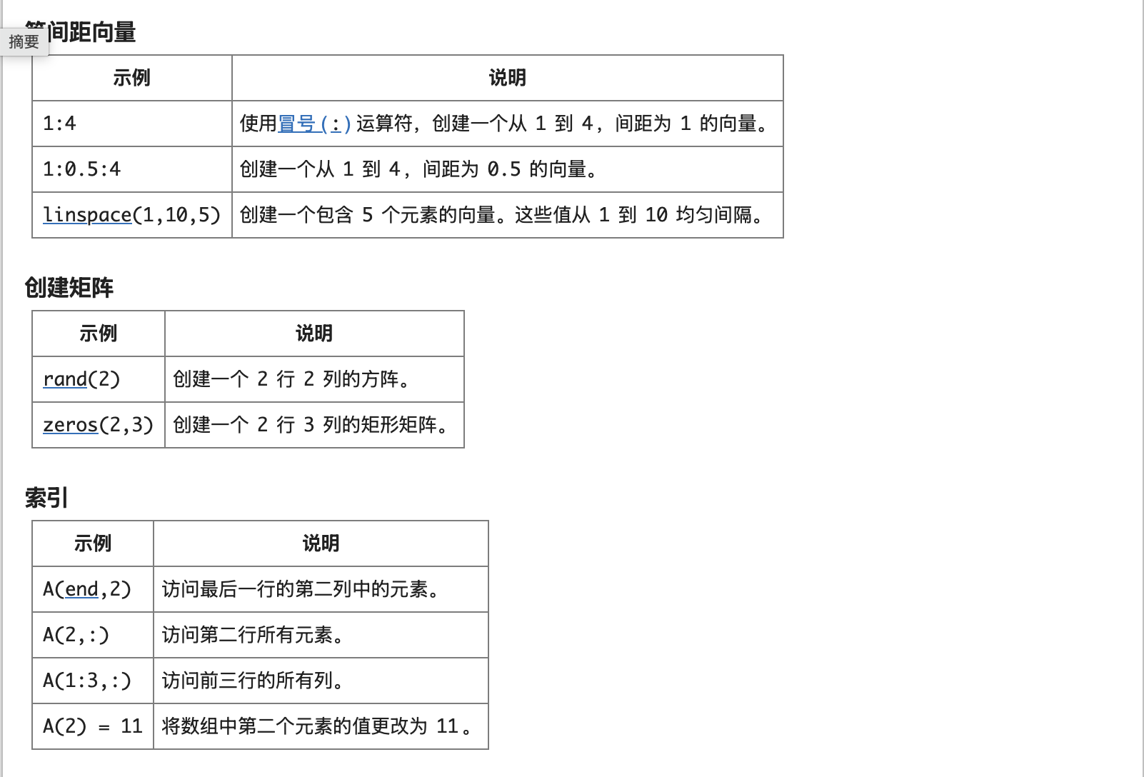 仅指定起始值和最终值来生成一个等间距的向量,同时注意,使用冒号运算符时,不需要方括号。