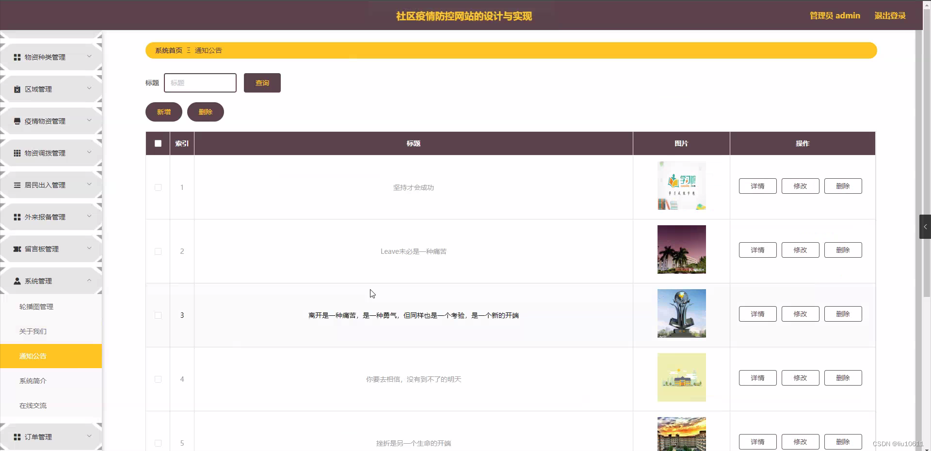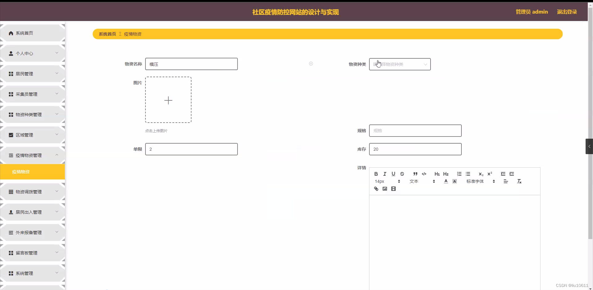 研究内容: 本研究的内容主要包括以下几个方面:首先,对社区疫情防控网站的功能进行深入研究,包括居民、物资种类、区域、采集员、疫情物资、物资调拨、居民出入、外来报备等功能;其次,分析社区疫情防控网站在实际应用中的优点和不足;最后,根据研究结果,提出改进社区疫情防控网站的措施。