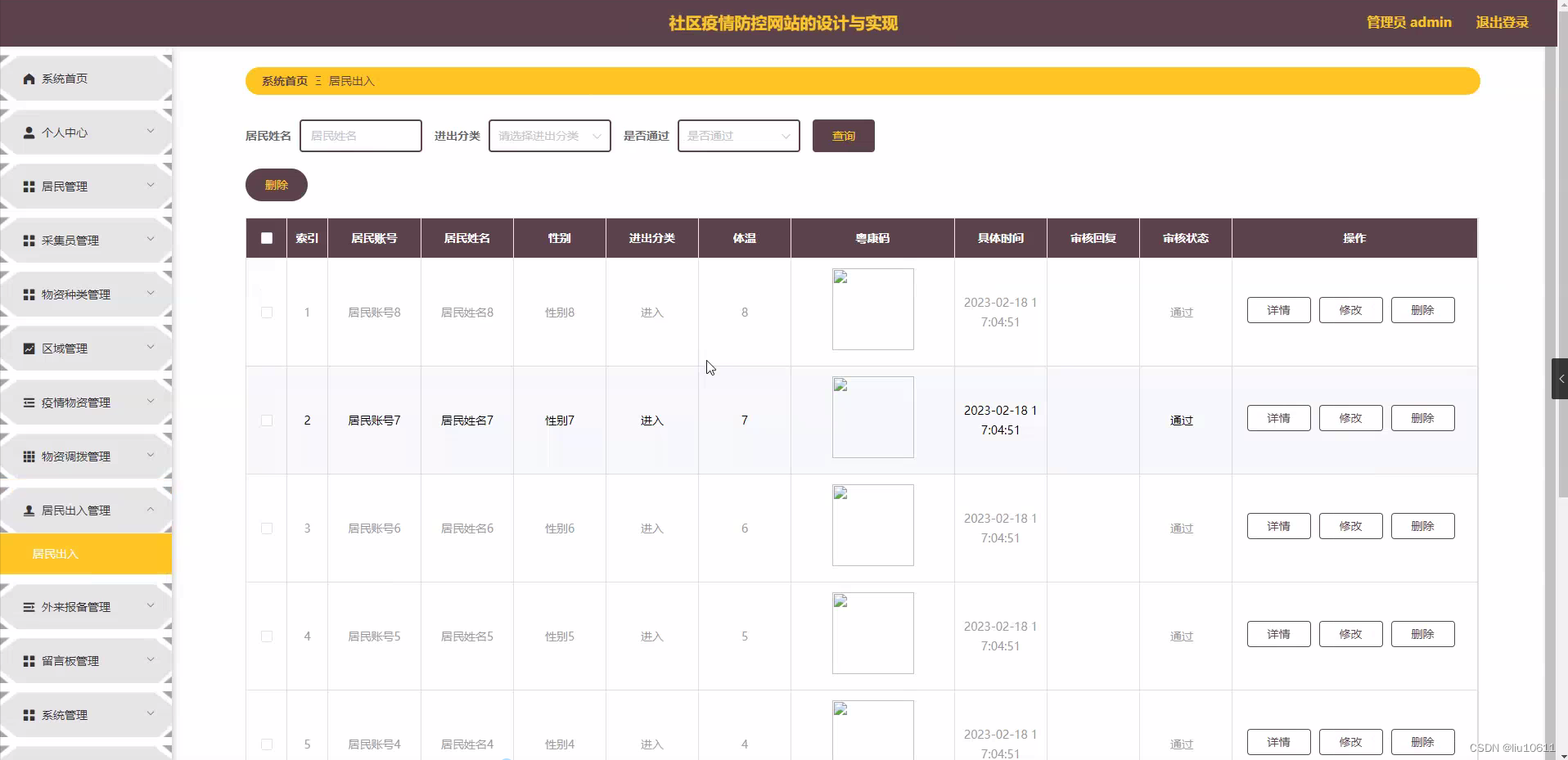 研究意义: 社区疫情防控网站的设计与实现对于提高社区疫情防控的效率和质量具有重要的意义。通过该网站,可以实现对居民、物资种类、区域、采集员、疫情物资、物资调拨、居民出入、外来报备等功能的管理,提高管理效率和工作质量。
