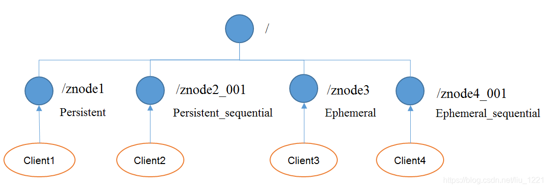 短暂(Ephemeral):客户端和服务器端断开连接后,创建的节点自己删除