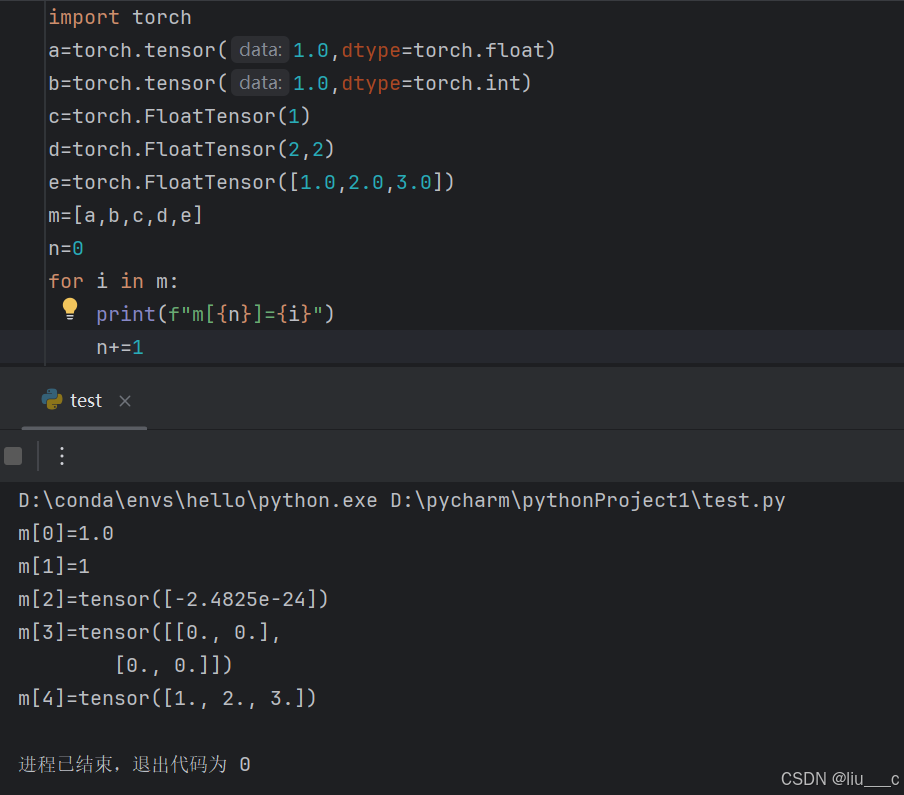 2.tensor的定义:tensor(data,*,dtype= , …… ) :