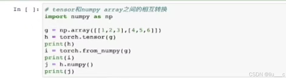 - NumPy数组和Tensor之间可以相互转换,且转换过程通常是无缝的(共享内存)。
