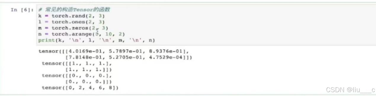 6.一些常见的构造tensor的函数(具体使用效果可由构造结果看出):
