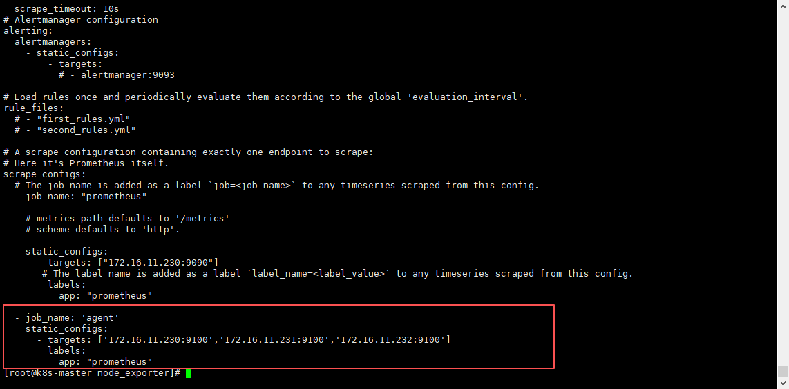 - targets: ['172.16.11.230:9100','172.16.11.231:9100','172.16.11.232:9100']