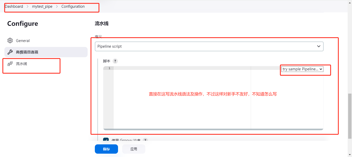 流水线既能作为任务的本身,也能作为Jenkinsfile,其类似于dockerfile(将启动docker的所有命令,打包成一个文件)