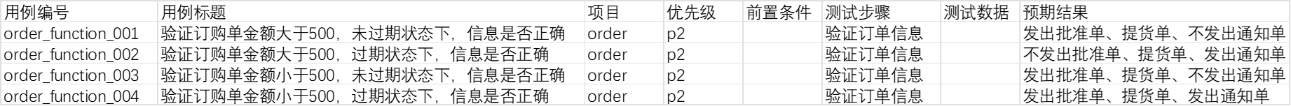 | 测试目的 | 验证订购单的信息是否正确 | |