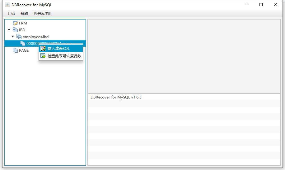 右击ibd文件选择扫描,扫描后出现对应的page文件,右键选择输入建表的SQL语句。