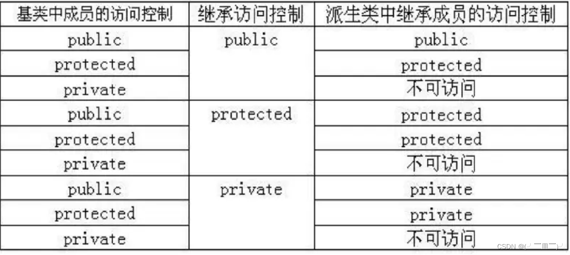 无论采用什么继承方式,基类的私有成员在派生类中都是不可访问的。