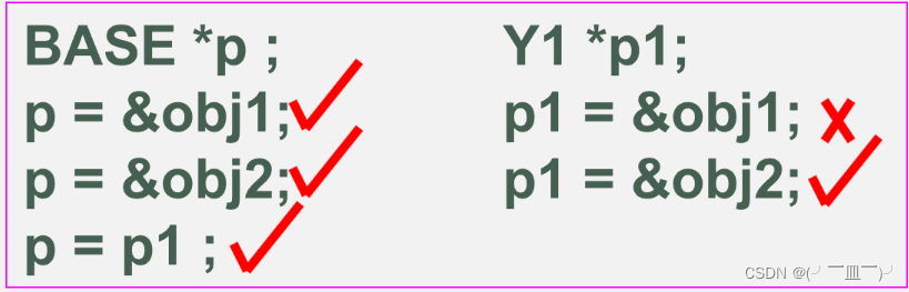 注:dynamic_cast<强制转化成的目标指针类型>(要转化对象指针)--用于指针变量的转化