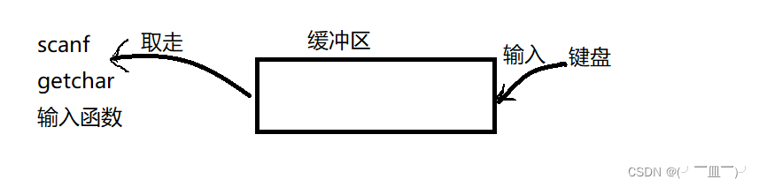 输入函数先来看缓冲区中是否有数据,如果有,它直接就拿走了,不需要从键盘输入,如果缓冲区什么都没有,则需要从键盘输入,再拿走。