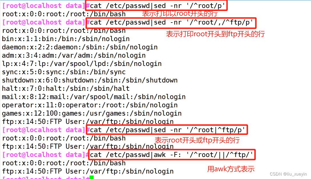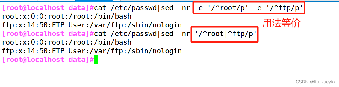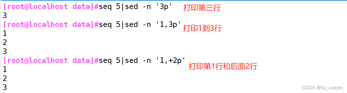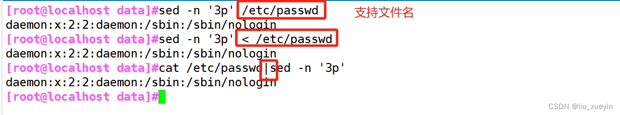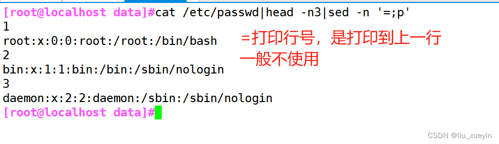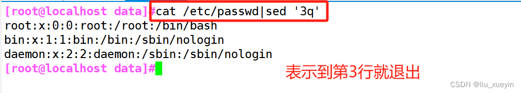 [root@localhost data]#cat /etc/passwd|sed '3q'