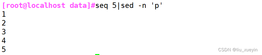 [root@localhost data]#seq 5|sed '3a\ hhhh'