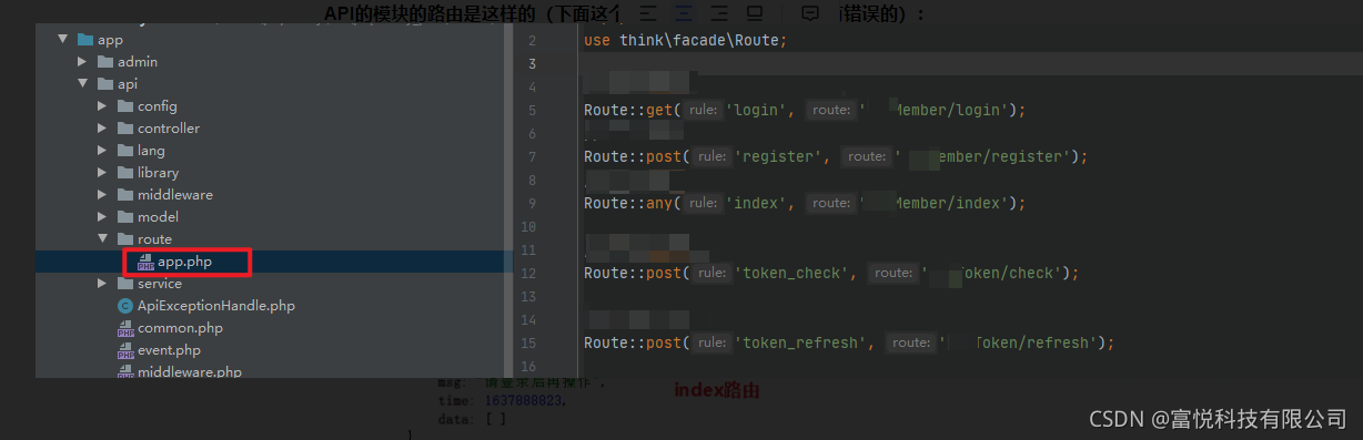 API的模块的路由是这样的(下面这个路由设置其中有些地方是有错误的):