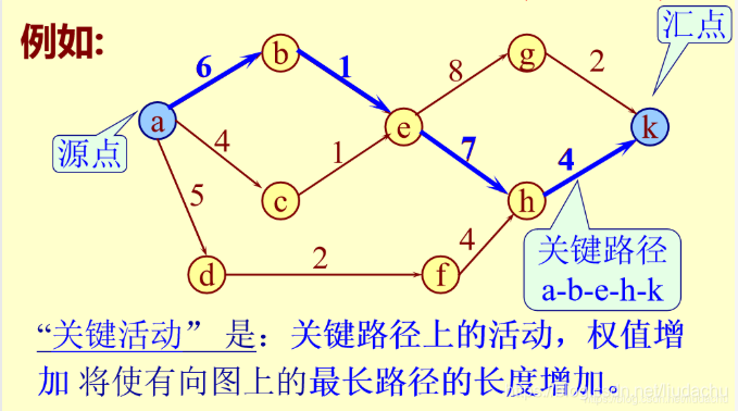 把从顶点k到汇点的最短路径长度叫做事件(顶点) 的 最迟发生时间 vl(k) .
