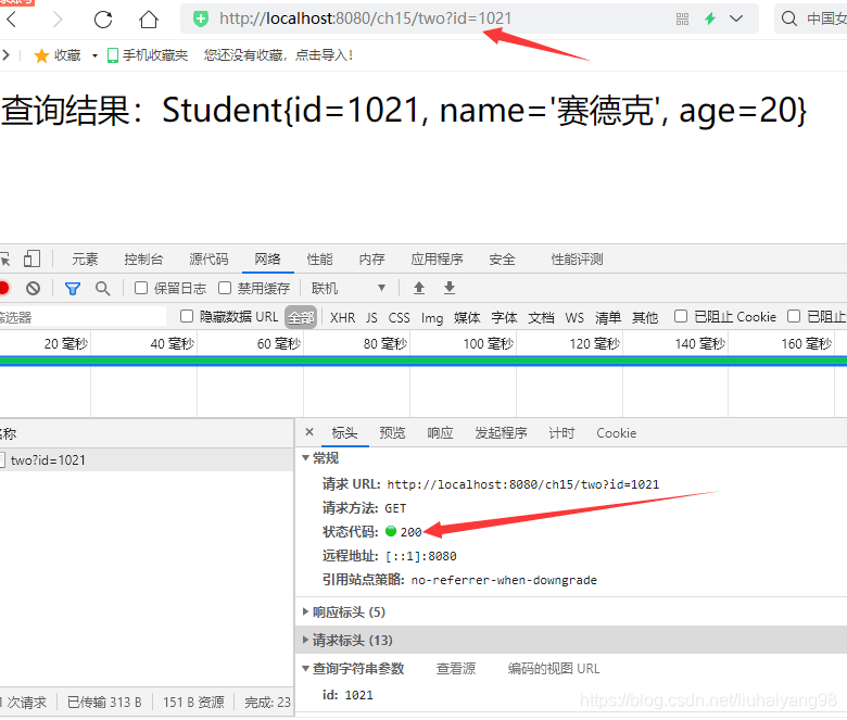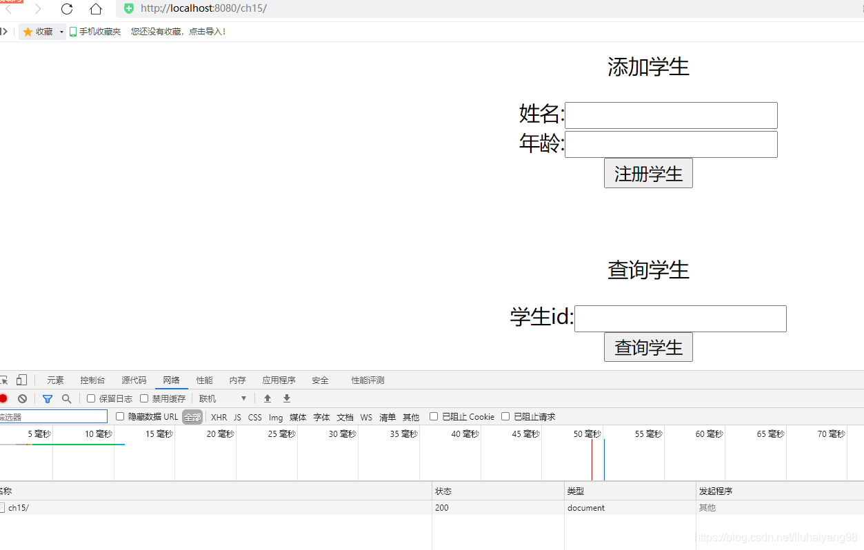2.11.2 查询学生(QueryStudentServlet)的测试结果