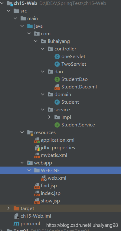 resources目录:mybatis主配置文件、spring配置文件、jdbc外部属性配置文件