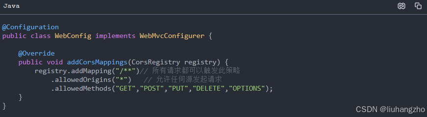 这段代码实现了全局范围内的跨域资源分享支持,确保来自不同原点的应用能够顺利调用服务并读取 API 描述文件。