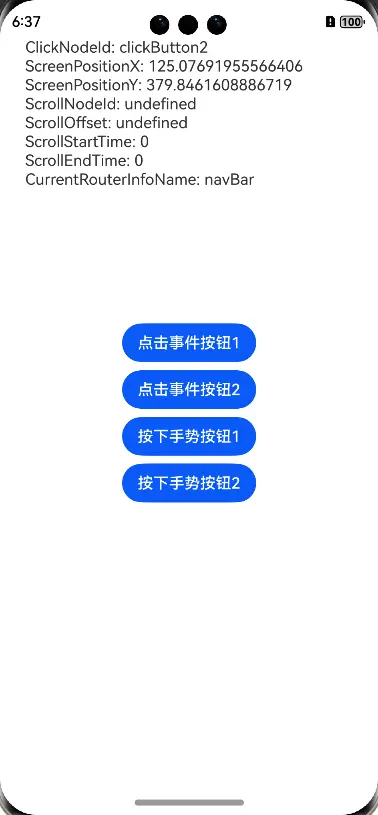 本文主要介绍如何在 鸿蒙 中实现埋点数据的收集,上报展示数据方式为反显到屏幕中,如下图所示,可根据实际进行调整