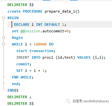 实际上两个存储过程,唯一的不一样在于对commit 的时机的把控,一个是每个插一条就要commit一次,另一个是在循环完毕后,在进行数据的commit;