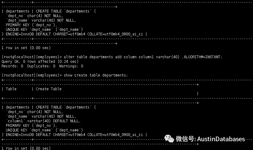 1 要不你就添加字段,你要是混合使用alter table语句,那恕不进行instant的操作,例如一条语句又是加字段,又是删字段