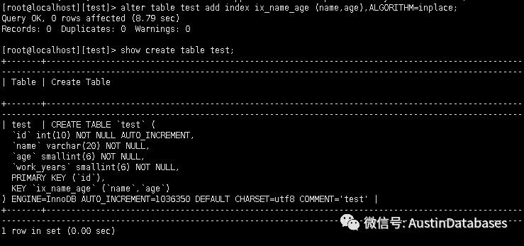 我们继续,一个测试,我们往test表里面插入数据,同时在另一个线程添加索引。