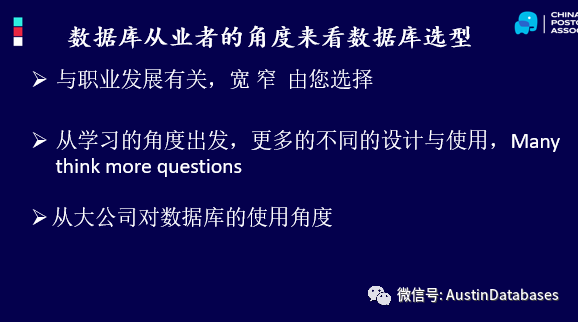 Hello 我是Austin,目前在从事数据库架构与数据库管理方面的工作,目前也在维护一个公众号,进行数据库知识的分享和讨论。今天会和大家来分享数据库选型方面的一些个人看法。