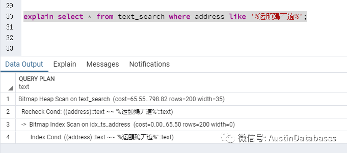 %% 百分号。而PG 对于这样的情况是可以走索引进行查询的。那我们将这一块的内容和下边的索引的内容进行一个合并,通过两个例子来讲一讲。