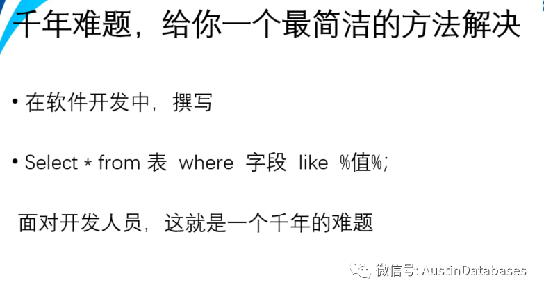 除此以外,PG对于程序员在模糊查询中的诚意也是满满的,我们都知道在开发一些系统中,用户的挑剔和项目经理以及需求经理对于开发人员来说,奇葩的需求,天天有,例如客户对一个系统中用户的留言点评,想进行一个查询,每天都要有,根据几个关键词来进行查找客户是否有不满意,或者意见的情况,当然这些词也是变化的,模糊查询中最让人讨厌的就是两边都是