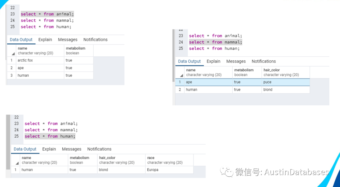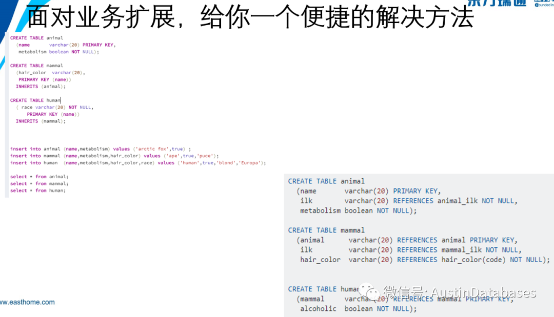 说完索引,我们在来说说PG中的继承表,继承表这个概念我个人没有再ORACLE , SQL SERVER ,MYSQL ,或者其他类似 MONGODB 中听说过,当然也可能是我比较孤陋寡闻。PG的继承表是一种在开发中很有用的技术,举例,我们的开发中已经有一张很大的数量表,其中已经有一些信息,但这些信息是主营业务的,同时随着业务的发展,我们又有了一些其他的业务,虽然是其他的业务,但这些业务大部分是主营业务的扩展,需求方要求开发,那你要在这个业务中继续开发,如果有这样的要求,就一定会要你进行原表的信息添加,也就是加字段,这就要产生一个问题,字段添加在原表,这并不是每个开发愿意做的事情,尤其是高级的开发,一张表本身在设计初期其实已经根据当时的情况作了规划,怎么能在不影响原有的规划,并且又能继承原表的字段,产生一张新表,并在此基础上进行字段的添加修改,或者随着业务的变化,很可能会将这段抹去,这都是继承表能给开发者的恩赐。