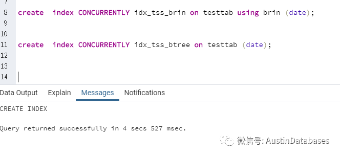 create index CONCURRENTLY idx_tss_brin on testtab using brin (date);