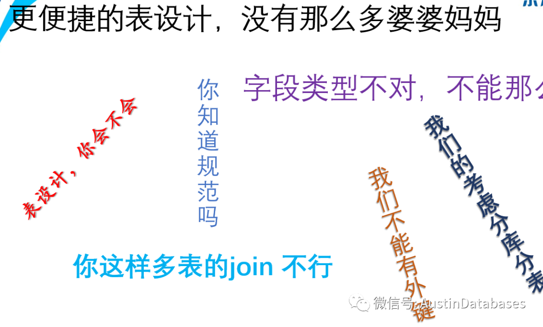 我相信在看到上面的图上的文字,有一部分非互联网的开发人员,已经坐不住的,但实际上是这样的,互联网企业使用的数据库的要求很多,当然这也是由于数据库的原理造成的问题,但需要开发人员来买单。