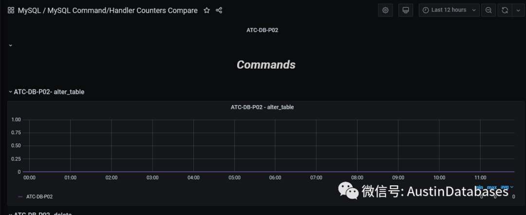 另外PMM2 还提供了对于数据库中一些操作的数量的展示 handler counter compare,意义在于此时此刻的数据库操作的ALTER delete update insert 操作都会透明的展示在此页面中方便分析查找问题,另外好的事情PMM 也支持历史数据查询,为分析问题提供了良好的数据提供。
