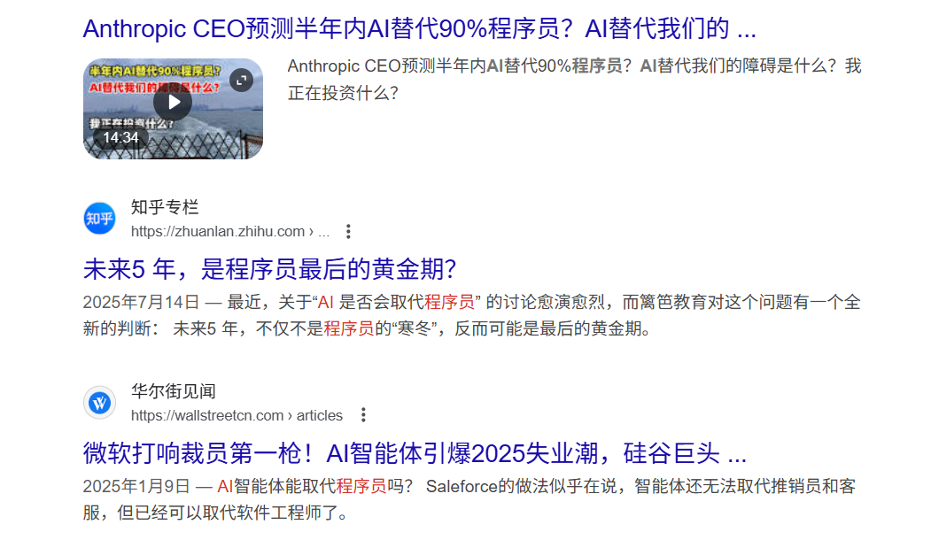 程序员,DBA,运维,架构,合称IT业界主要工种,DBA和架构算这里的少数派,而程序员才是IT业界的顶流,上周耍抖音,一个搞AI的博主说北美正在发生大量的程序员被替代的事情,在美国闹的挺厉害,本着看看IT业界技术前沿的美国,这事情到底是不是真的额,我开通自己的“小马达”,看看。