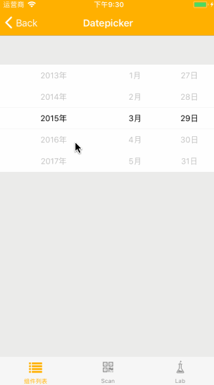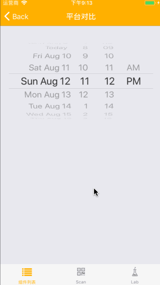 针对上面的问题我们开发了基于 ScrollView 的 Datepicker 组件,统一类名与调用方式,保证了跨平台通用性。
