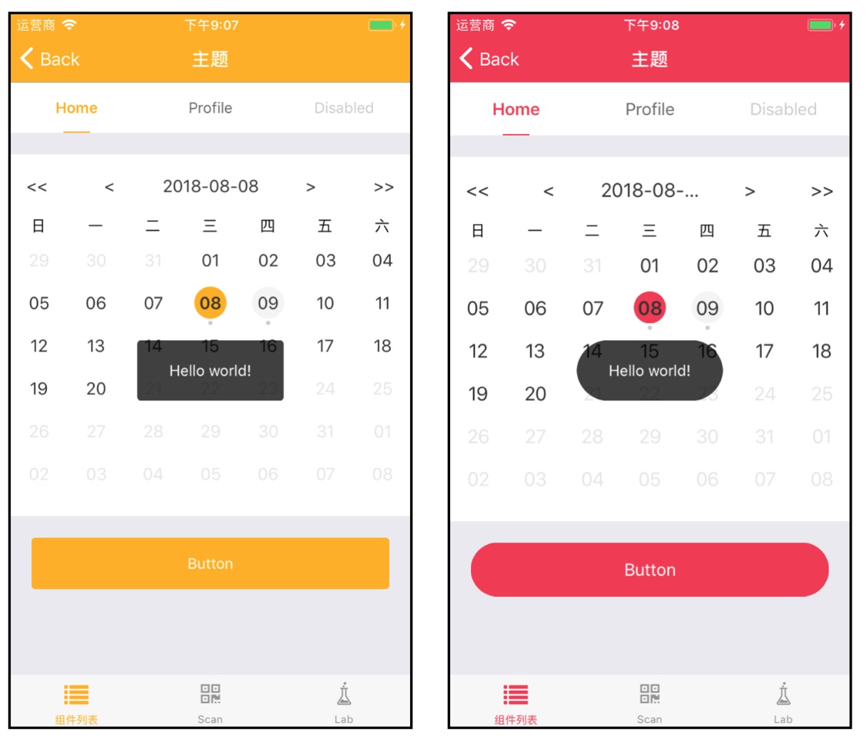 在每个组的实现中,会事先引入基础工具层中的样式变量,使用统一的变量对象而不是在组件中自行定义,这样就保证了 UI 样式的一致性。同时,beeshell 提供了重置样式变量的 API,可以实现一键换肤。我们推荐 beeshell 的用户在开发移动应用时,事先定义好样式变量。一方面使用自己的样式变量重置 beeshell 的样式变量;另一方面在业务功能开发时,使用自己定义好的样式变量,从而保证整体 UI 的一致性。