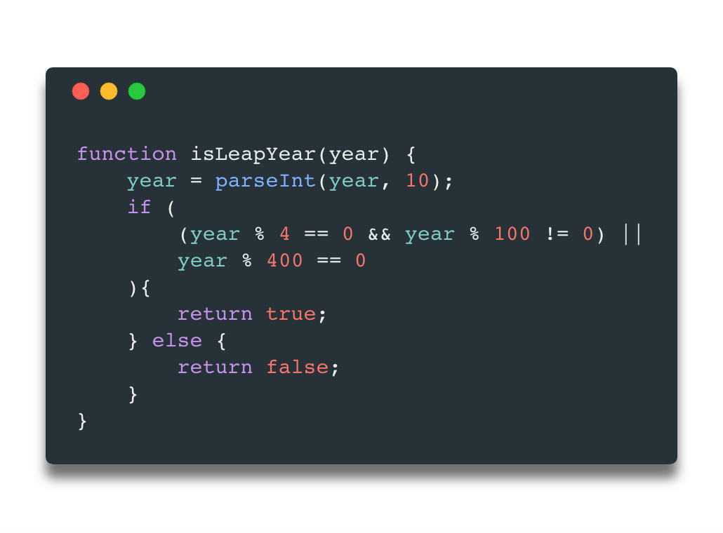 还是以 isLeapYear 函数来进行说明,其代码如下: