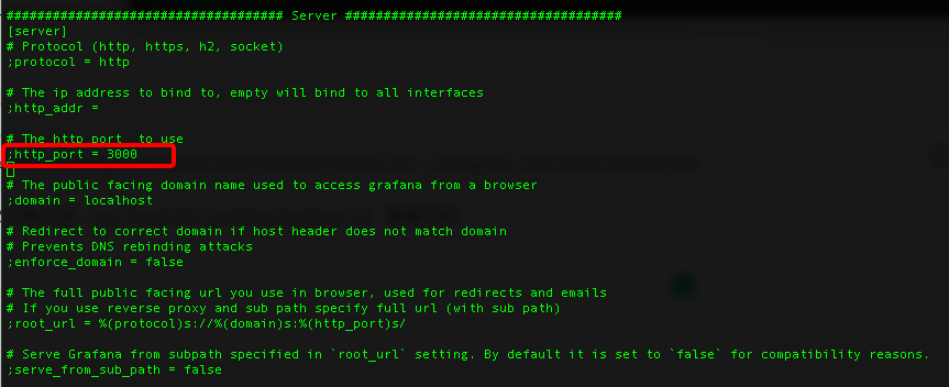 grafana的配置文件默认是: /usr/local/etc/grafana/grafana.ini,查看内容: