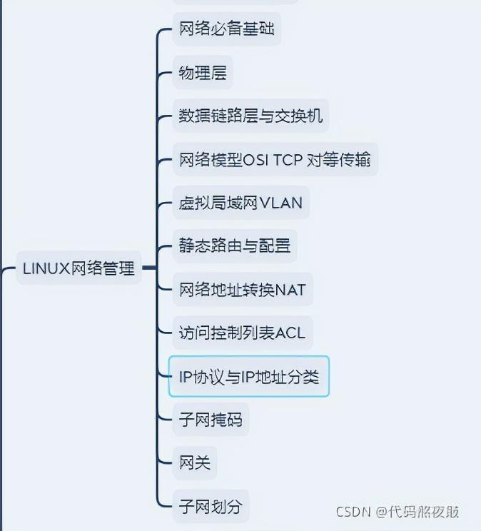 网络必备基础 物理层 数据链路层与交换机 网络模型OSI TCP 对等传输 虚拟局域网VLAN 静态路由与配置 网络地址转换NAT 访问控制列表ACL IP协议与IP地址分类 子网掩码 网关 子网划分