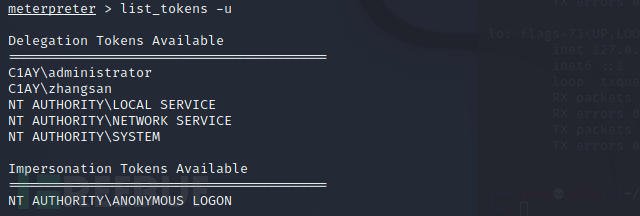 默认情况下,我们列举令牌,只能列举出当前用户和比当前用户权限更低的用户令牌。