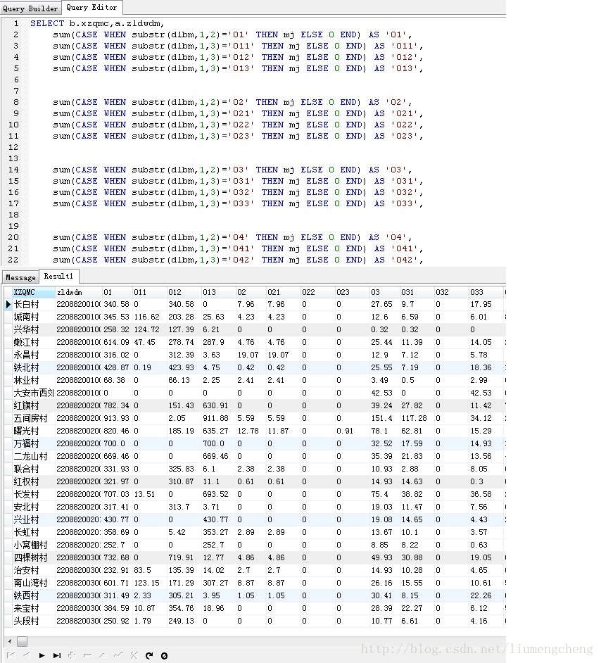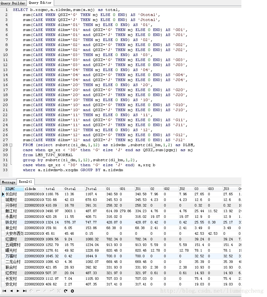 FROM (select substr(zl_dm,1,12) as zldwdm,substr(dl_bm,1,2) as dlbm,sum(gqmj) as mj from LMS_TJPC_NORMAL