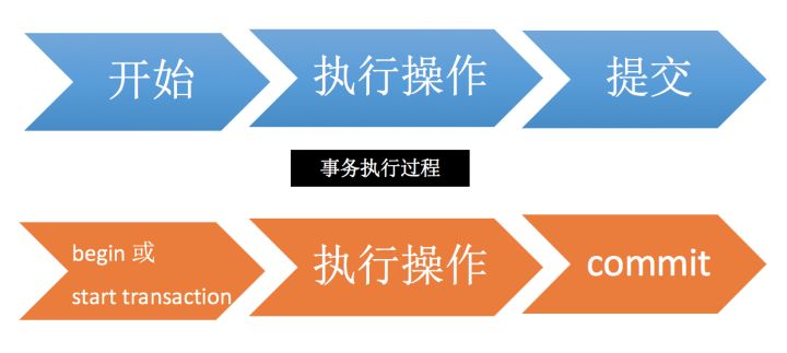 事务的执行过程如下,以 begin 或者 start transaction 开始,然后执行一系列操作,最后要执行 commit 操作,事务才算结束。当然,如果进行回滚操作(rollback),事务也会结束。