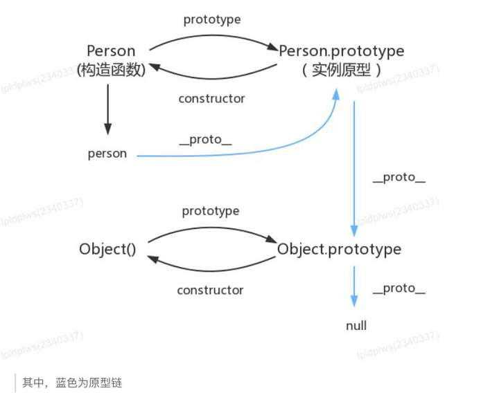其实原型对象就是通过 Object 构造函数生成的,结合之前所讲,实例的 __proto__ 指向构造函数