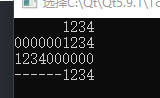 cout<<setw(10)<<setfill('0')<<setiosflags(ios::left)<<1234<<endl;