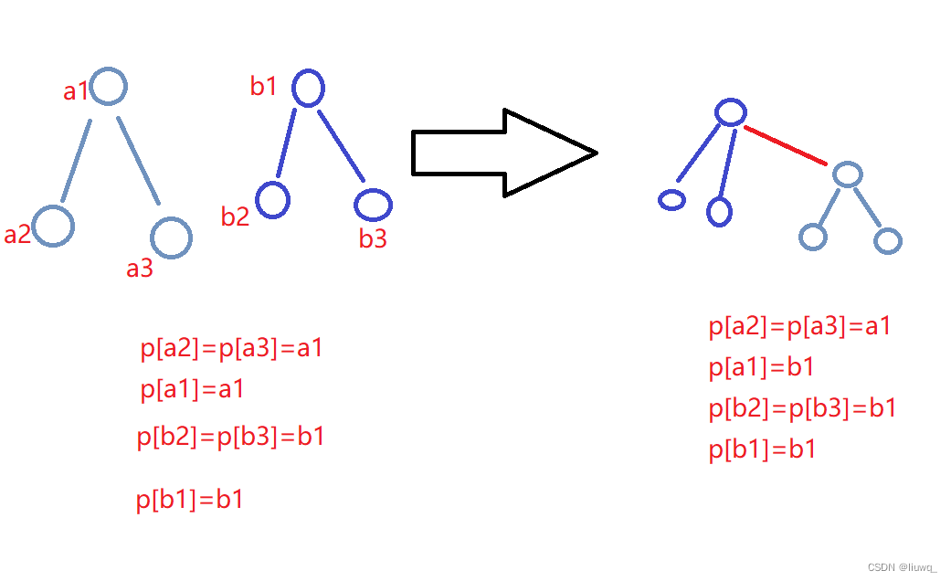 p[find(a)]=find(b);